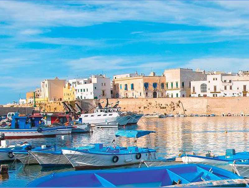 De vakantiehuizen liggen dichtbij Brindisi. Van oudsher bekend als vertrekpunt van de veerboot naar Griekenland. Maar Brindisi biedt meer! De boulevard, waar ooit auto’s reden, is omgetoverd tot een voetgangersgebied met palmbomen, bankjes, terrasjes, cafés, restaurants. Vooral wanneer het donker wordt en het afkoelt, is dit dé plek om te borrelen, dineren en de lokale bevolking te bewonderen. Onderweg naar Bari kunt u aanleggen in Polignano al Mare en eten in het speciale Ristorante Grotta Pallazzese dat is gevestigd in een grot met uitzicht op zee.