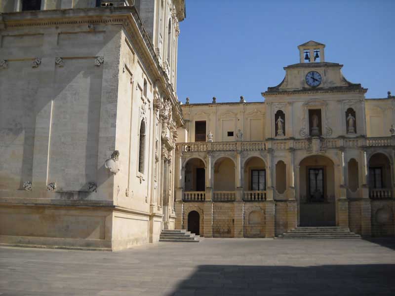 Lecce, met bijnamen als Florence van het zuiden of de Stad van Barok, ligt op 50 km. De façade van de Santa Croce is zo rijkelijk versierd met antropomorfe figuren, dieren, bloemdecoraties, putti en druivenranken dat u niet weet waar u moet beginnen met fotograferen; steeds ontdekt u weer iets nieuws. Andere monumenten in de beroemde barokstad zijn het indrukwekkende Romeinse amfitheater, het Piazza Sant’Oronzo met het standbeeld van de heilige Oronzo die vanuit de hoogte over de stad waakt, en de Santa Chiara, met een zeer elegante voorgevel.